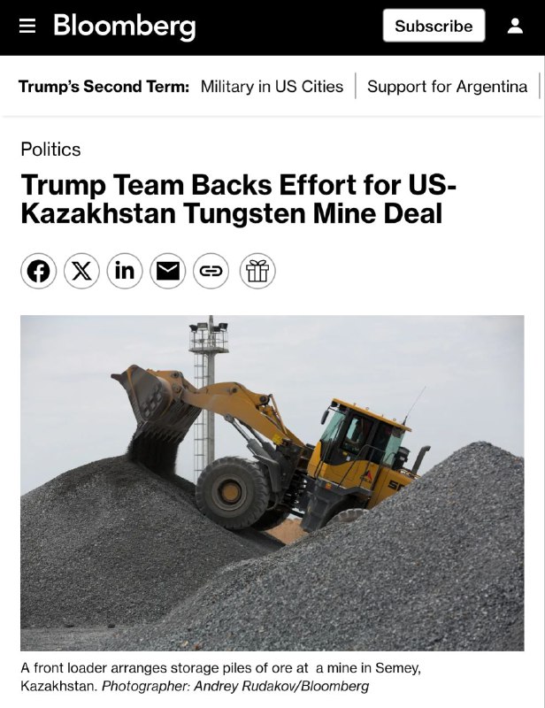 АҚШ әкімшілігі Қазақстандағы әлемдегі ең ірі игерілмеген вольфрам кен орындарының біріне америкалық компанияның қолжетімділігін қамтамасыз ету мақсатында келіссөздерге қатысып жатыр. Бұл металл стратегиялық маңызға ие, себебі Пентагон оны оқ-дәрі, снаряд және өзге де әскери техника өндірісінде кеңінен пайдаланады.